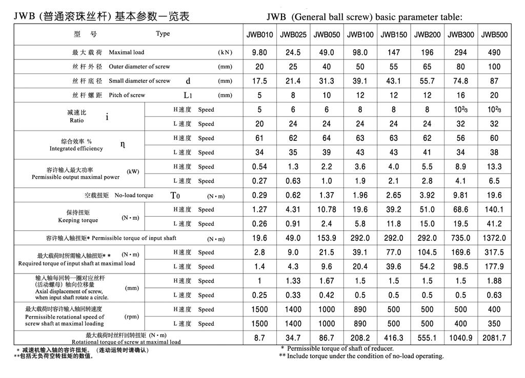 單臺升降機的負荷時間率(%ED) 以30分為單位計算,JWM(梯形絲桿類型)的負荷時間率不得_過20%ED,JWB(普通滾珠絲桿)的負荷時間率不得_過30%ED,