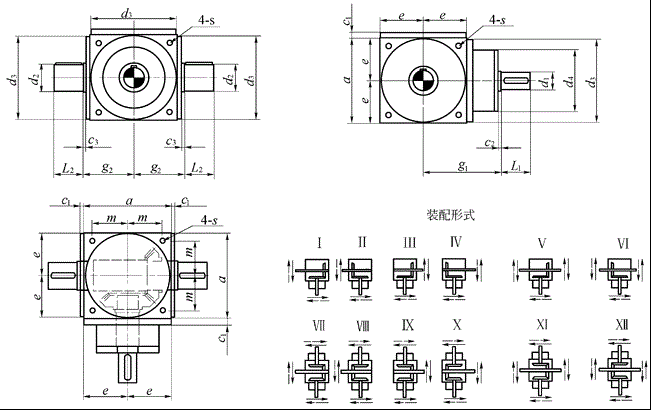 注:d2可作為輸入端,此時,SPS型轉向箱在許用速度范圍內可作換向傳動 |