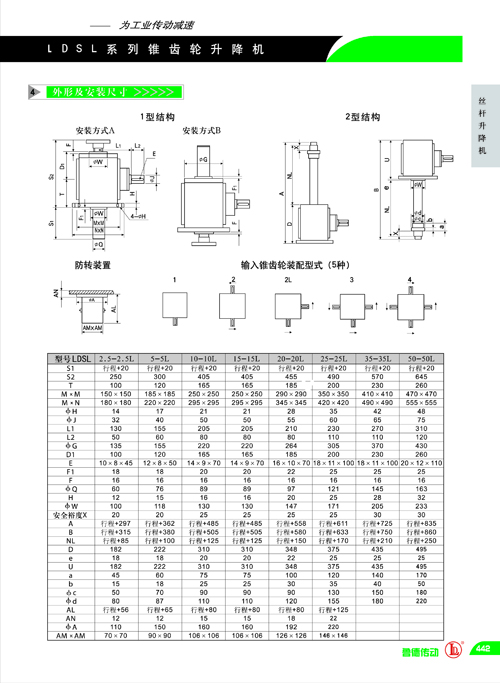 蝸輪絲桿升降機相比較其效率_,使用壽命更長,并具有體積小、重量輕、結構緊湊、安裝方便、使用靈活、可靠型高等諸多優點。_輸入轉速500r/min,_提升速度2.7m/min,能按_程序準確的控制調整提升或推進的高度,承載能力為2.5T~50T。壓力負荷較低時允許_的提升高度,提升不同負荷是允許的扭矩、功率、轉速不同,不同啟動持續率的_功率不同、輸入軸伸處允許承受_的徑向力,允許裝齒輪,鏈輪或皮帶輪。